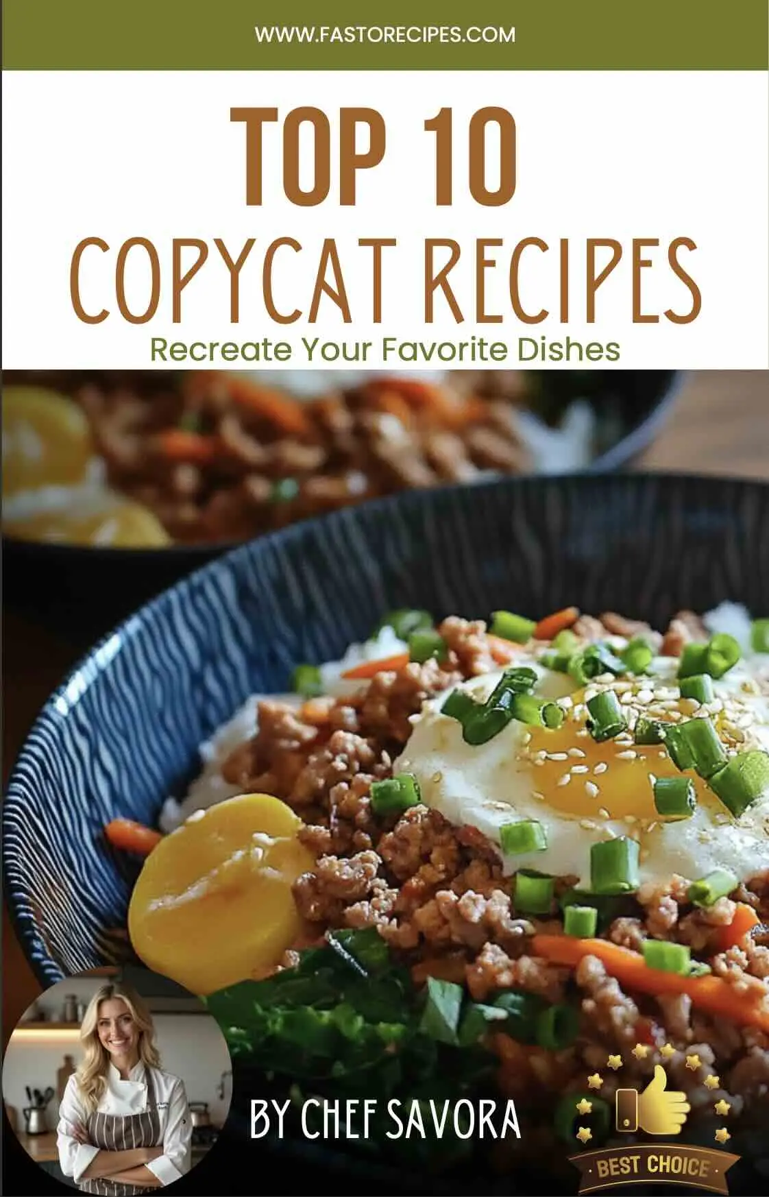 My exclusive ebook, “Top 10 Copycat Recipes,” reveals the secrets to recreating the most popular dishes right in your kitchen! From mouthwatering appetizers to irresistible desserts, this collection has it all.